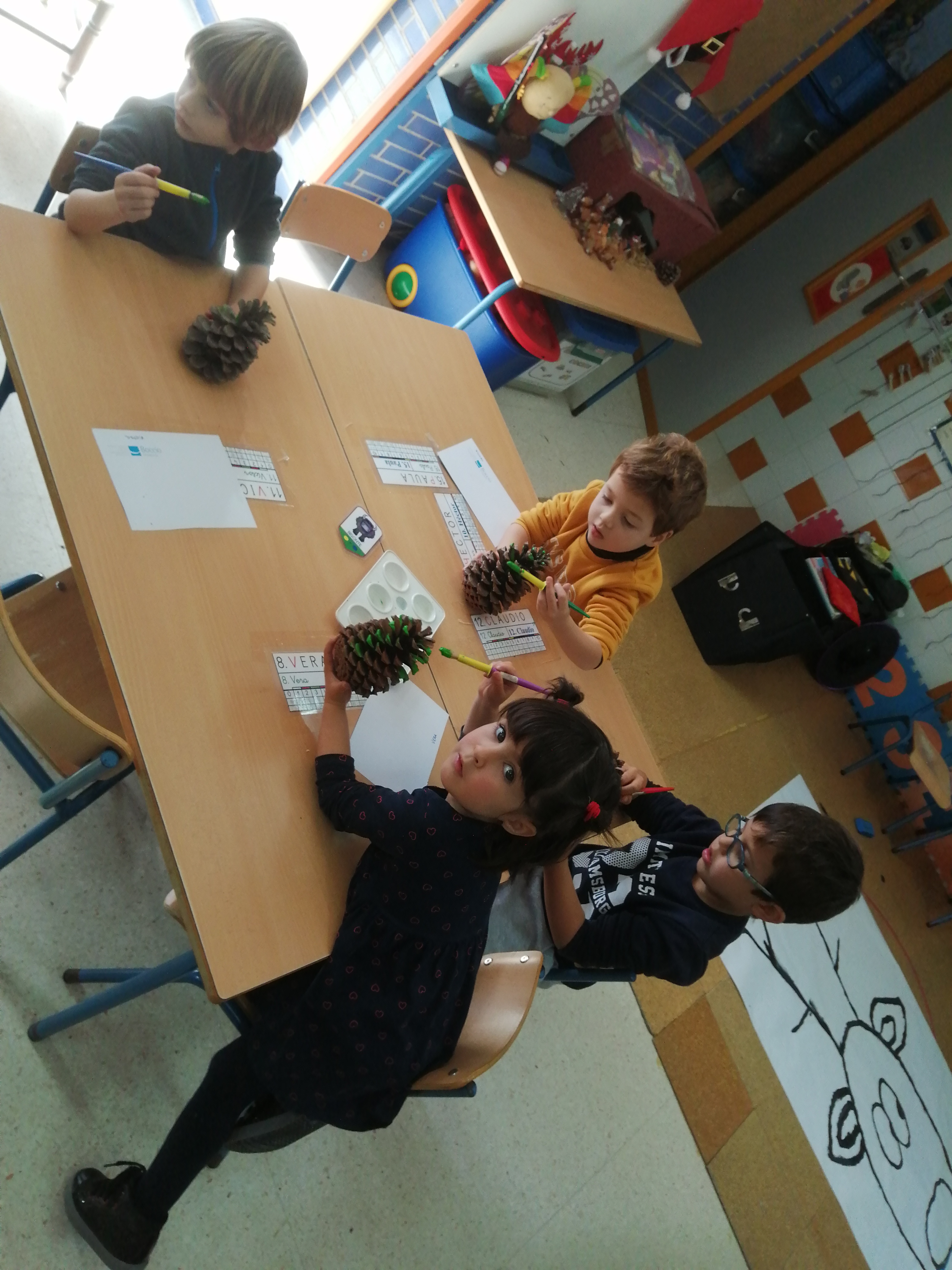 Y en formato miniportable hemos empezado a hacer con piñas un pequeño árbol de Navidad para que luzca bello en nuestras casas, para recordar nuestro villancico y su significado, así como para embellecer nuestras casas.